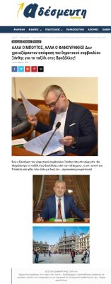 Παρόλα αυτά η ηλεκτρονική σας Εφημερίδα στο πρωτοσέλιδο της 15ης Οκτωβρίου 2019 αναφέρει με τελείως παραπλανητικό τρόπο ότι η μετάβαση στις Βρυξέλες στις 7-10-2019 έγινε χωρίς να τηρηθούν νόμιμες διαδικασίες και συγκεκριμένα «η ΟΙΚΟΝΟΜΙΚΗ ΥΠΗΡΕΣΙΑ του Δήμου Ξάνθης, ΠΡΟΠΛΗΡΩΣΕ τα ταξίδι του Προέδρου του δημοτικού συμβουλίου Γιάννη Μπούτου, της κυρίας Χατζογλίδου Δέσποινας που πήγε εκεί ως πολίτης και των δημοτικών υπαλλήλων, Θεραπίδου Όλγας, Κυριακίδης Αναστάσιος και Χατζητολούσης Αντώνης χωρίς να περιμένει την απόφαση του δημοτικού συμβουλίου Ξάνθης!»