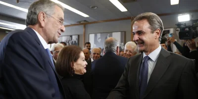 Αξίζει να σημειωθεί ότι στο τέλος της εκδήλωσης οι κύριοι Μητσοτάκης και Σαμαράς αντήλλαξαν εκ νέου χαιρετισμό.