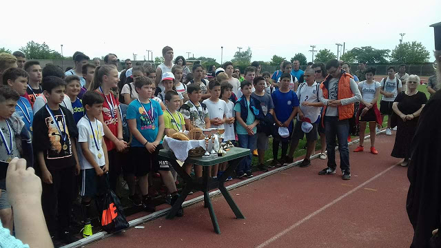 Ο Σεβασμιώτατος Ποιμενάρχης μας ευλόγησε την αρτοκλασία και ευχαρίστησε τους Ιερείς μας, τους κατηχητές-κατηχήτριες, τα παιδιά μας που πληθωρικά συμμετείχαν, τους γονείς που εμπιστεύονται τα παιδιά τους στην Εκκλησία, τους διοργανωτές των αγώνων, τη δημοτική αρχή και τους υπευθύνους του σταδίου, γυμναστές, διαιτητές, ιατρούς και νοσηλευτικό προσωπικό που εθελοντικά βοήθησαν την άρτια διεξαγωγή των ποδοσφαιρικών αγώνων. Έδωσε την πατρική του ευλογία σε όλους κάι ανανέωσε την συνάντηση μας στην Δρυμιά που ετοιμάζεται να δεχθεί στην αγκαλιά της τα παιδιά μας τον προσεχή Ιούλιο.