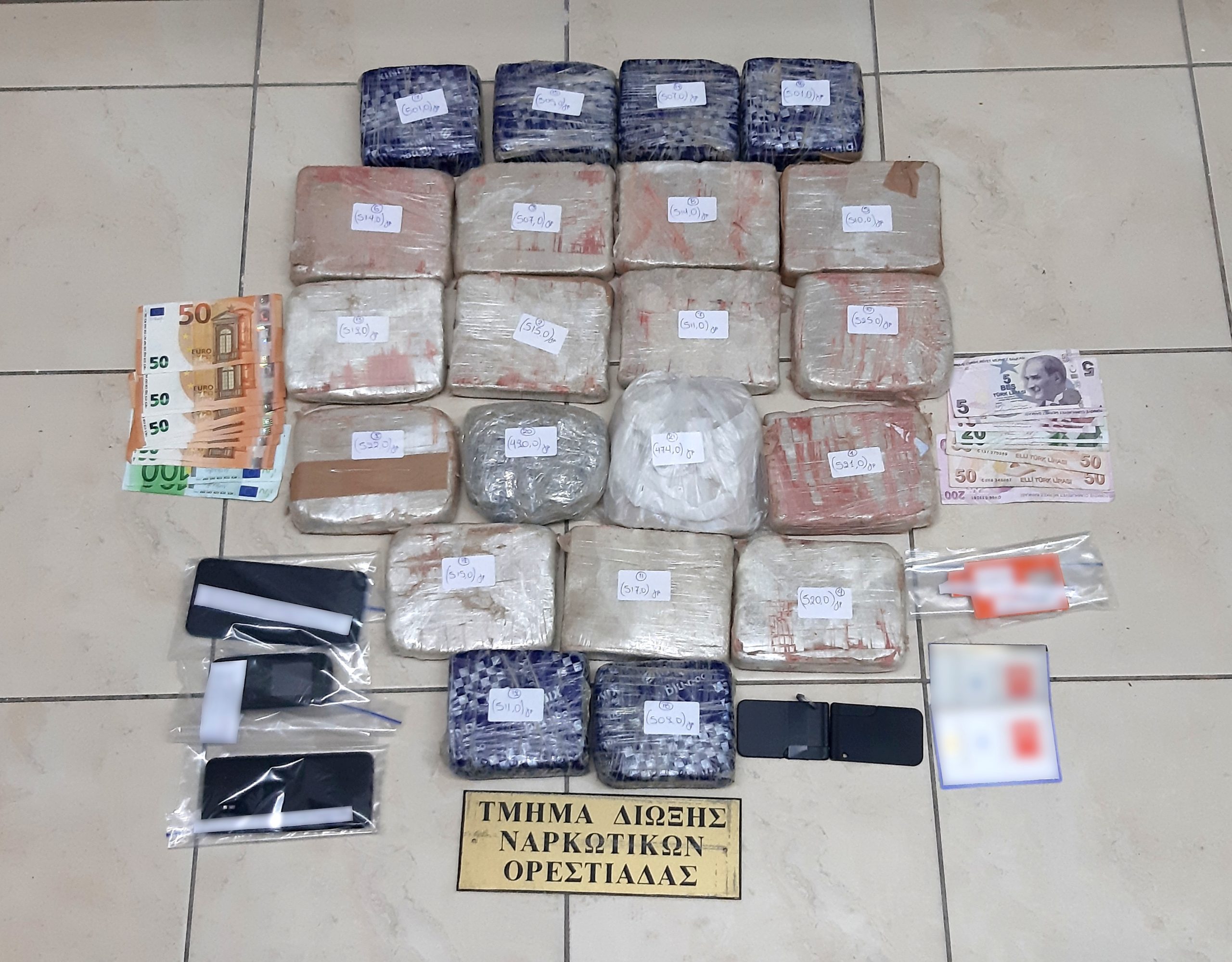 Κατασχέθηκαν η παραπάνω ποσότητα ναρκωτικών, το Ι.Χ.Ε. αυτοκίνητο, κινητά τηλέφωνα και χρηματικά ποσά (700 ευρώ και 370 τούρκικες λίρες)
