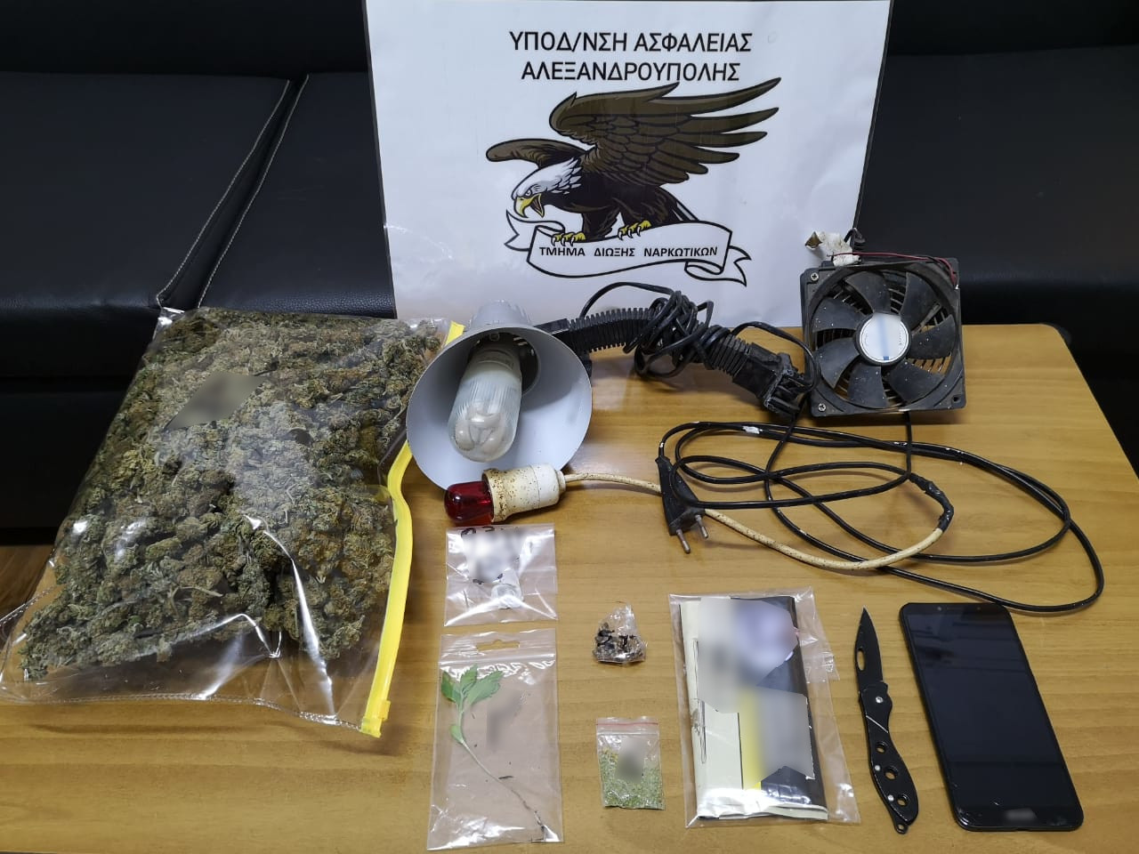 Κατασχέθηκαν μεταξύ άλλων 589,7 γραμμάρια ακατέργαστης κάνναβης, 1 φυτό κάνναβης και 1 ηλεκτρονική ζυγαριά ακριβείας