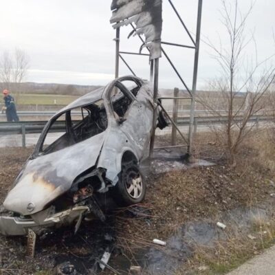 Συγκεκριμένα, γύρω στις 8:00 π.μ., το αυτοκίνητο που οδηγούσε ένας 55χρονος, κινούμενος προς την κατεύθυνση Διδυμότειχο – Λάβαρα από τον παράδρομο της εθνικής οδού, ξέφυγε από την πορεία του στις στροφές μετά το Αμόριο. Το όχημα προσέκρουσε σε πινακίδες σήμανσης του δρόμου, με αποτέλεσμα να τυλιχθεί αμέσως στις φλόγες.