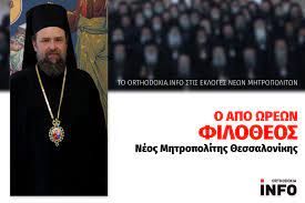 Ο Επίσκοπος Ωρεών Φιλόθεος είναι από σήμερα Δευτέρα 9 Οκτωβρίου ο νέος Μητροπολίτης Θεσσαλονίκης. Η εκλογή του έγινε με συντριπτική πλειοψηφία και σε κλίμα ομόνοιας, με 75 ψήφους από την Ιερά Σύνοδο της Εκκλησίας της Ελλάδος.