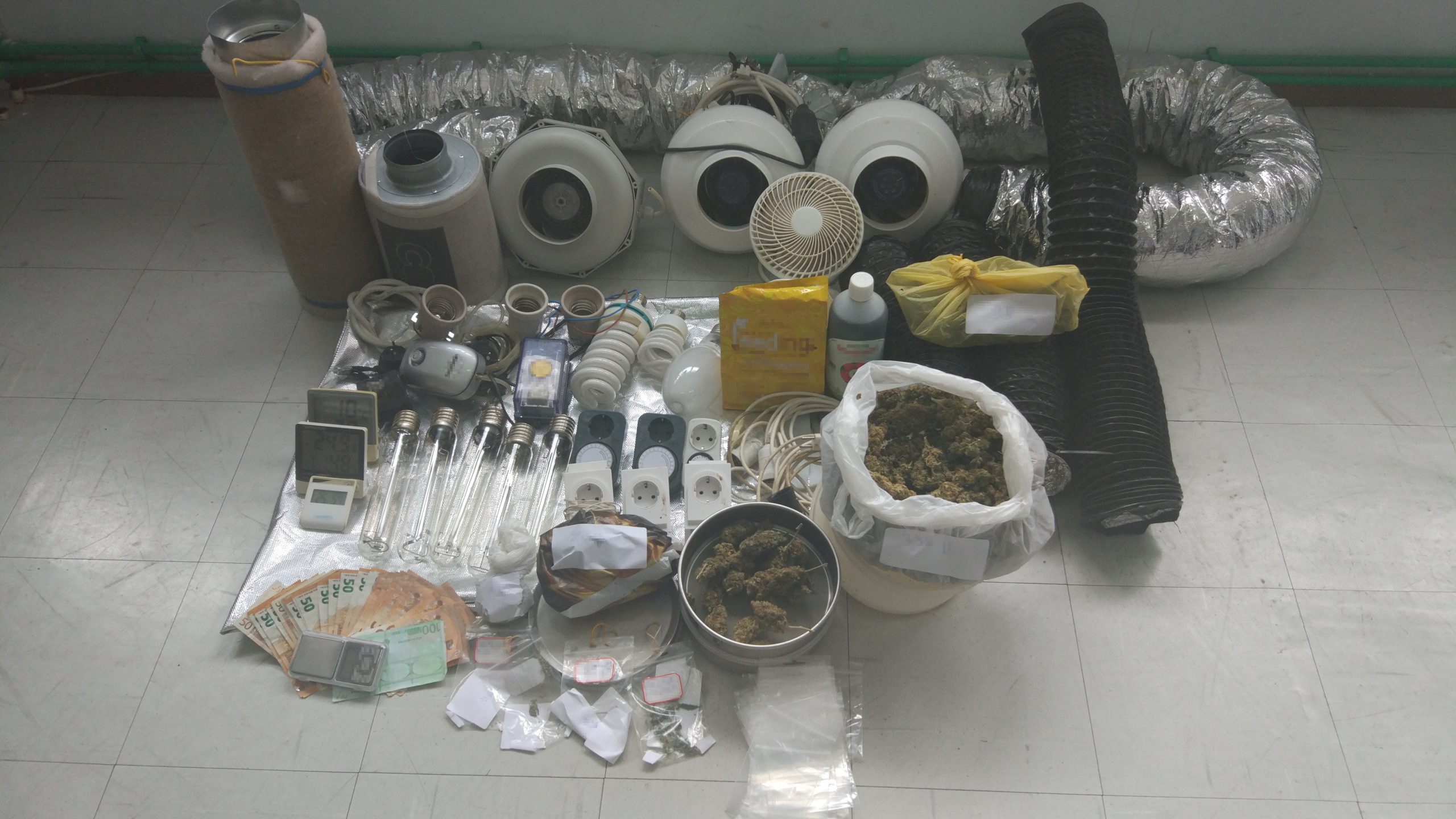Κατασχέθηκαν μεταξύ άλλων 375,5 γραμμάρια ακατέργαστης κάνναβης, αποξηραμένοι κλώνοι κάνναβης και εξοπλισμός καλλιέργειας κάνναβης
