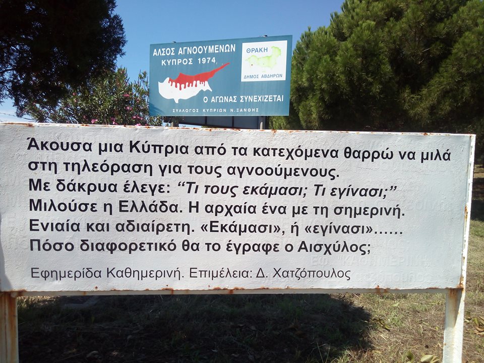Ευχόμαστε όλοι ο χρόνος αυτός, ο 44ος χρόνος της κατοχής να είναι το τέρμα της κατοχής και η πατρίδα μας επιτέλους να ζήσει ελεύθερη και να διακριβωθεί η τύχη όλων των αγνοουμένων μας. Εμείς συνεχίζουμε τον αγώνα μας με όποιες μορφές αγώνα μπορούμε από εδώ από την ακριτική Θράκη μας με συμπαραστάτες όλους τους φορείς και συλλόγους του χώρου, αλλά πρωτίστως την μεγάλη συμπαράσταση του Θρακιώτικου λαού.