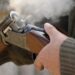 Με το κουταλάκι ανακάτευαν τη σοκολάτα με το ρόδι μέχρι να γίνει ομοιογενές το υλικό.