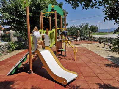 Η ενίσχυση δέκα νέων παιδικών χαρών ολοκληρώθηκε και περιλαμβάνει προμήθεια και τοποθέτηση εξοπλισμού, περιφράξεων, πληροφοριακών πινακίδων, κατάλληλης ξυλείας κλπ.