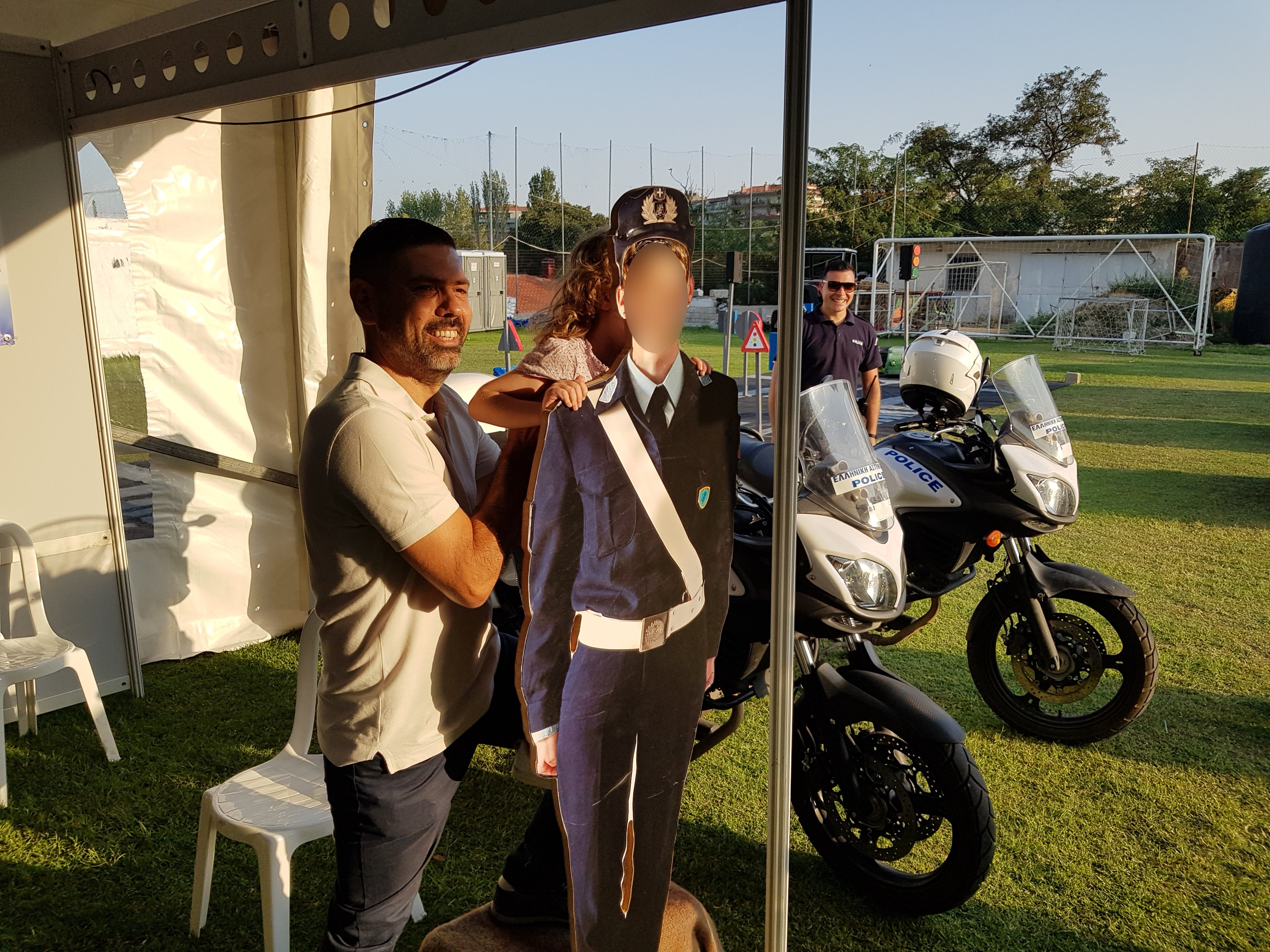 Επιπλέον, για τα παιδιά υπήρχαν δίκυκλες μοτοσικλέτες της Ελληνικής Αστυνομίας και μια ξύλινη κατασκευή, παρέχοντας τους την ευκαιρία να φωτογραφηθούν ως αστυνομικοί.