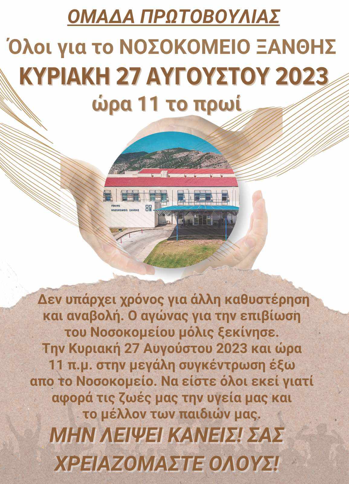 ΟΜΑΔΑ ΠΡΩΤΟΒΟΥΛΙΑΣ: Κυριακή 27 Αυγούστου, 11:00, ΟΛΟΙ ΜΑΖΙ ΓΙΑ ΤΟ ΝΟΣΟΚΟΜΕΊΟ ΞΑΝΘΗΣ