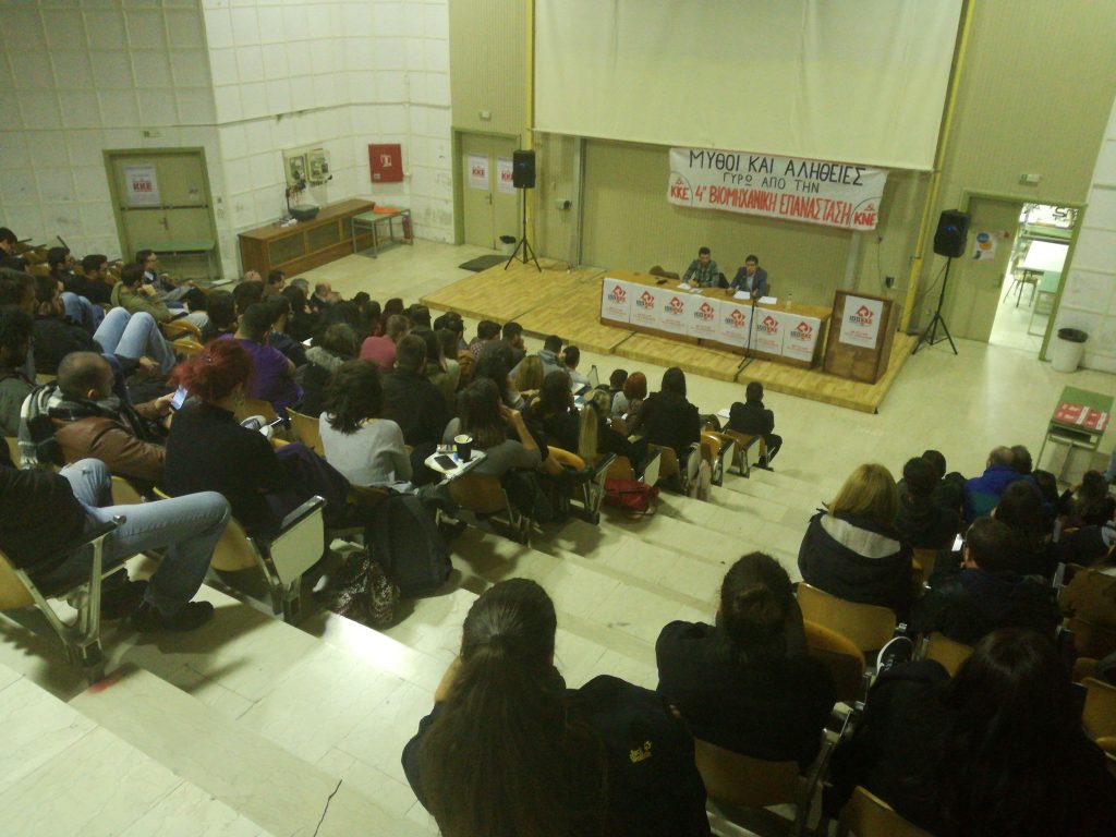 Δεκάδες νέοι και νέες, προπτυχιακοί και μεταπτυχιακοί φοιτητές, καθώς και πλήθος εργαζομένων παρακολούθησαν με αμείωτο ενδιαφέρον την εισηγητική ομιλία. Βασική προσπάθεια της ομιλίας να απαντήσει στα ερωτήματα που προβληματίζουν μεγάλο κομμάτι ειδικά των νέων επιστημόνων, τα οποία και η Οργάνωση ανέδειξε στην ανακοίνωση-κάλεσμα για την εκδήλωση: