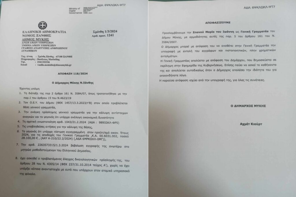 *Αυτό κι αν είναι είδηση. Η πρώην διευθύντρια του Δήμου Ξάνθης Μαρία Σπανού, ανέλαβε γραμματέας στο Δήμο Μύκης με απόφαση του δήμαρχου Κιούρτ Αχμέτ.
