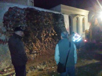 *Αποκλειστικό. Ολόκληρος ο πλινθόκτιστος τοίχος σπιτιού στην αρχή της οδού ΙΧ Μεραρχίας κατέρρευσε ολοσχερώς χθες το απόγευμα να χρειαστεί η άμεση παρέμβαση του Αντιδήμαρχου Τεχνικών Υπηρεσιών Θωμά Ηλιάδη με το συνεργείο του Δήμου, προκειμένου με φαγάνα να καθαρίσουν το χώρο, ώστε να μη συμβεί κάποιο ατύχημα…