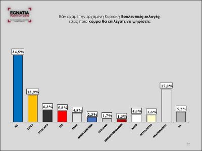 *Στον αντίποδα, η Νέα Δημοκρατία φαίνεται να διευρύνει σημαντικά την επιρροή της στη Βόρεια Ελλάδα (Μακεδονία, Θράκη, Ήπειρος), αυξάνοντας το ποσοστό της στην πρόθεση ψήφου κατά 6,4%, στο 34,5% τον Ιούνιο από 28,1% τον Δεκέμβριο. Στην τρίτη θέση παραμένει η Χρυσή Αυγή διατηρώντας το ποσοστό της στο 6,3%, ενώ ακολουθούν το ΚΚΕ που αυξάνει το ποσοστό του στο 5,8% (από 4,4% τον Δεκέμβριο) και το Κίνημα Αλλαγής που πέφτει στο 4,5% από 6,3% τον Δεκέμβριο.