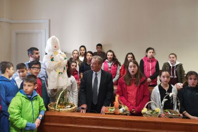 Ο Δήμαρχος με χαρά άκουσε τα κάλαντα του Λαζάρου από τους μικρούς μαθητές, τους οποίους και ευχαρίστησε για την επίσκεψή τους και τους ευχήθηκε «Καλό Πάσχα».