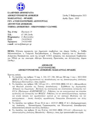 *Απόφαση ΣΟΚ για τον Παναγιώτη Αμβροσιάδη, Πρόεδρο του Κέντρου Κοινωνικής Προστασίας και Αλληλεγγύης Δήμου Ξάνθης.