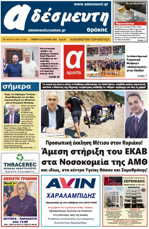 -Το «προφητικό» πρωτοσέλιδο της «Αδέσμευτης» στις 29 Ιουνίου 2022 με την προσωπική έκκληση του Περιφερειάρχη ΑΜΘ Χρήστου Μέτιου στον Κυριάκο Μητσοτάκη για Κέντρα υγείας Θάσου και Σαμοθράκης!