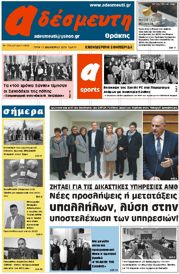 ΠΡΩΤΟΣΕΛΙΔΟ 17 ΔΕΚΕΜΒΡΙΟΥ 2019