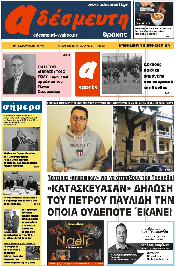 ΠΡΩΤΟΣΕΛΙΔΟ Μ.ΠΕΜΠΤΗ 25 ΑΠΡΙΛΙΟΥ 2019