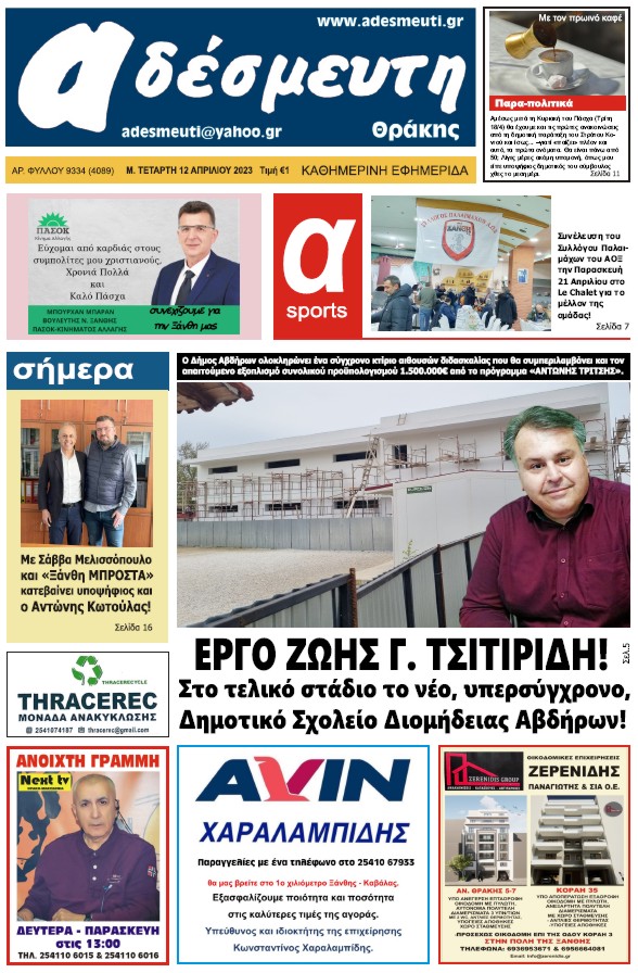 ΠΡΩΤΟΣΕΛΙΔΟ Μ. ΤΕΤΑΡΤΗ 12 ΑΠΡΙΛΙΟΥ 2023