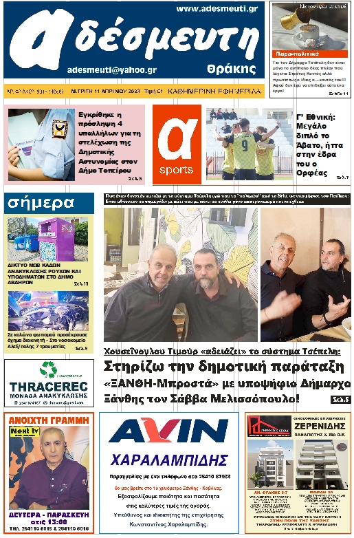ΠΡΩΤΟΣΕΛΙΔΟ Μ.ΤΡΙΤΗ 11 ΑΠΡΙΛΙΟΥ 2023