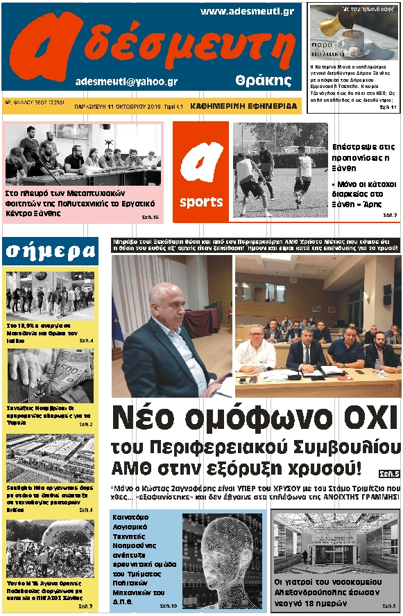 ΠΡΩΤΟΣΕΛΙΔΟ ΠΑΡΑΣΚΕΥΗ 11 ΟΚΤΩΒΡΙΟΥ 2019