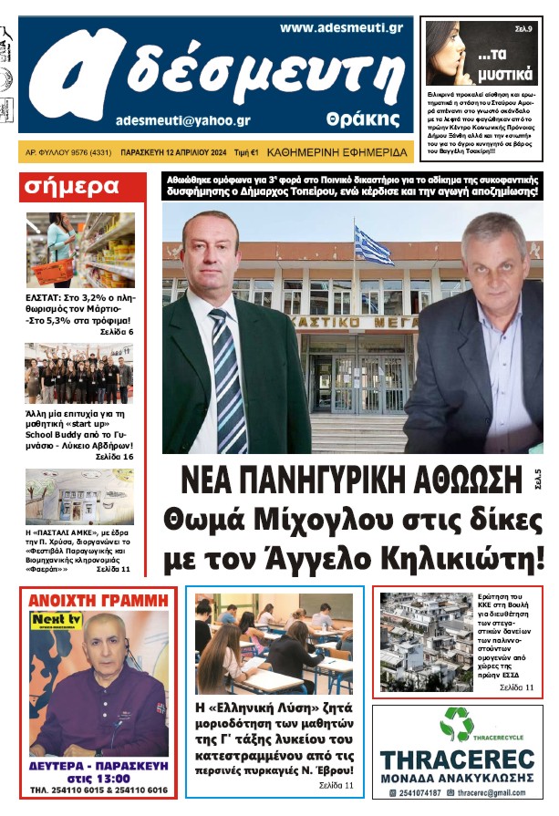 ΠΡΩΤΟΣΕΛΙΔΟ ΠΑΡΑΣΚΕΥΗ 12 ΑΠΡΙΛΙΟΥ 2024