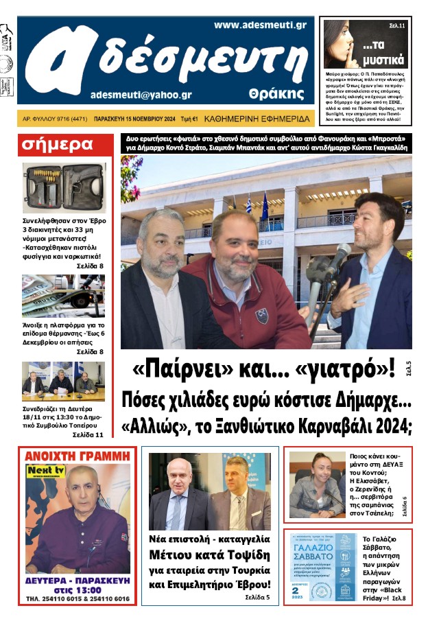 ΠΡΩΤΟΣΕΛΙΔΟ ΠΑΡΑΣΚΕΥΗ 15 ΝΟΕΜΒΡΙΟΥ 2024