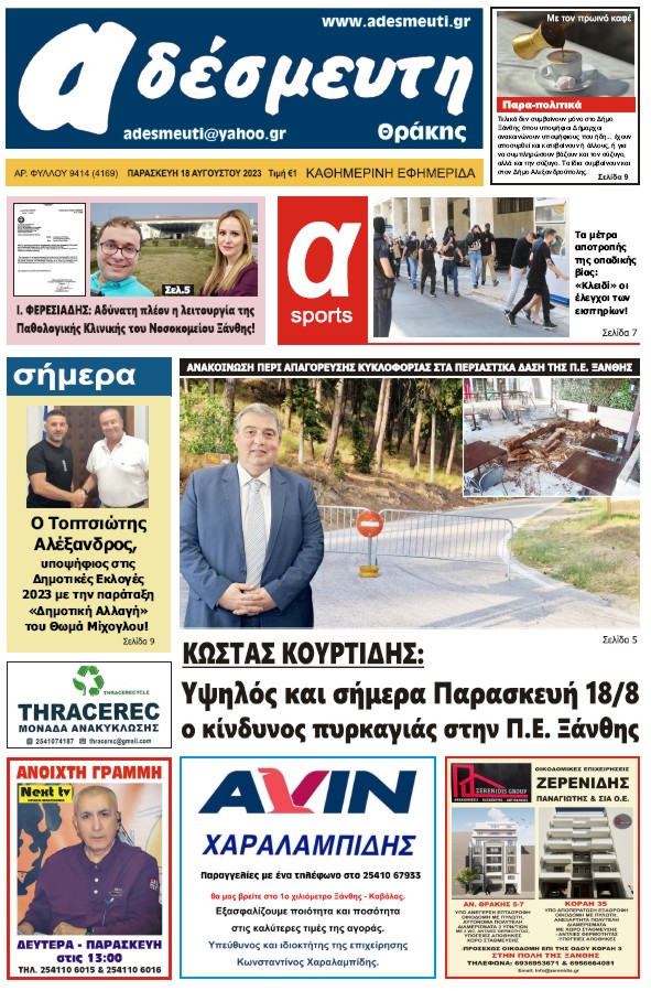 ΠΡΩΤΟΣΕΛΙΔΟ ΠΑΡΑΣΚΕΥΗ 18 ΑΥΓΟΥΣΤΟΥ 2023