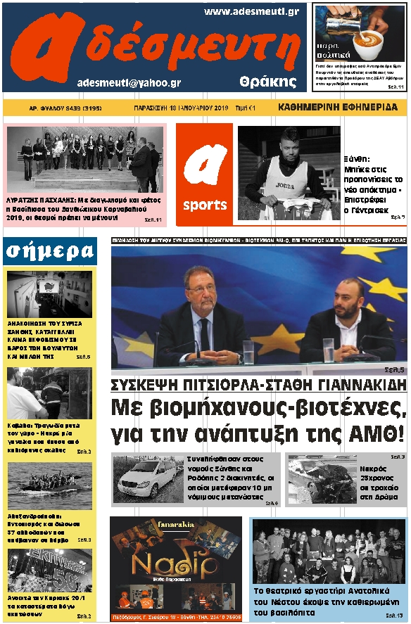 ΠΡΩΤΟΣΕΛΙΔΟ ΠΑΡΑΣΚΕΥΗ 18 ΙΑΝΟΥΑΡΙΟΥ 2019