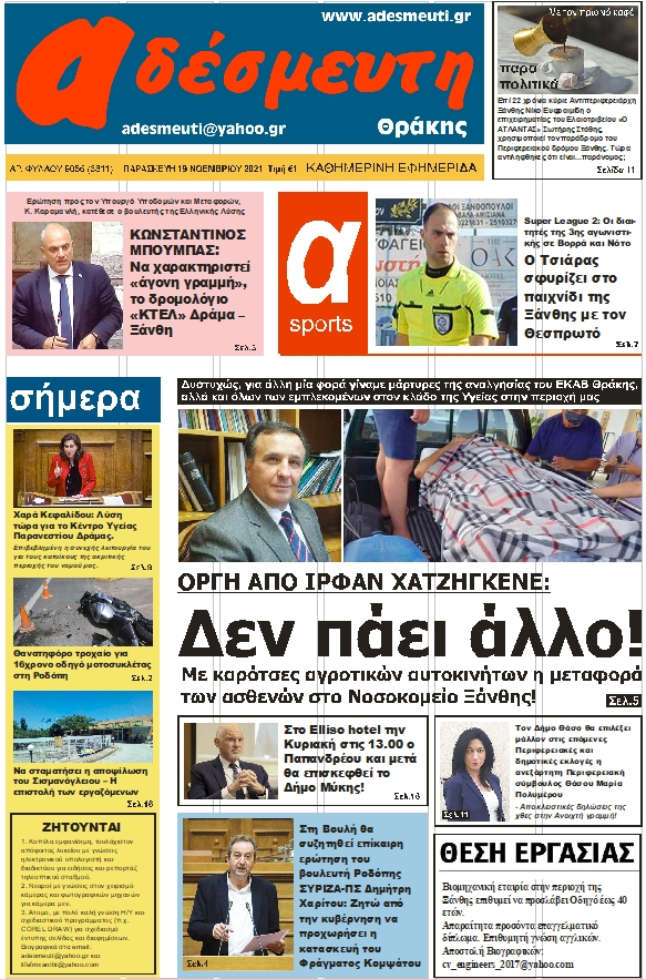 ΠΡΩΤΟΣΕΛΙΔΟ ΠΑΡΑΣΚΕΥΗ 19 ΝΟΕΜΒΡΙΟΥ 2021
