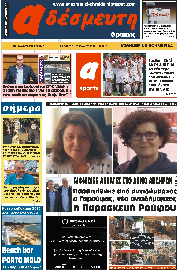 ΠΡΩΤΟΣΕΛΙΔΟ ΠΑΡΑΣΚΕΥΗ 20 ΙΟΥΝΙΟΥ 2018