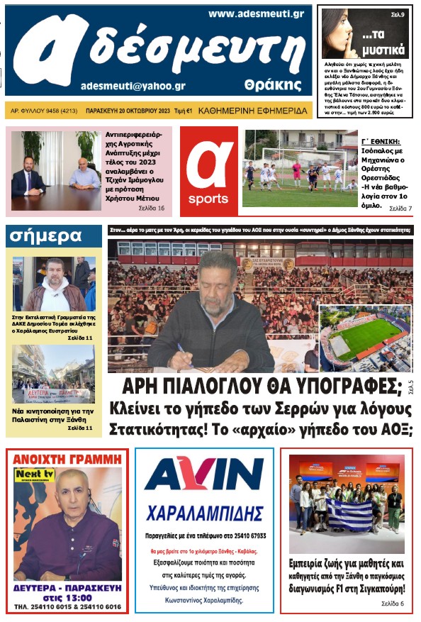 ΠΡΩΤΟΣΕΛΙΔΟ ΠΑΡΑΣΚΕΥΗ 20 ΟΚΤΩΒΡΙΟΥ 2023