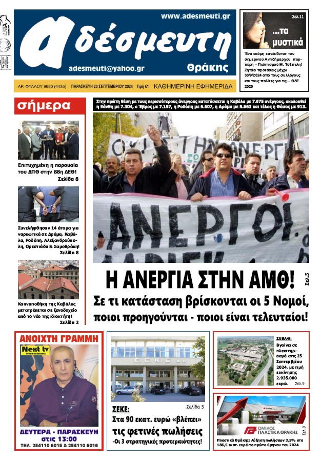 ΠΡΩΤΟΣΕΛΙΔΟ ΠΑΡΑΣΚΕΥΗ 20 ΣΕΠΤΕΜΒΡΙΟΥ 2024