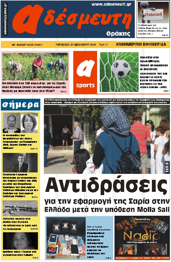 ΠΡΩΤΟΣΕΛΙΔΟ ΠΑΡΑΣΚΕΥΗ 21 ΔΕΚΕΜΒΡΙΟΥ 2018