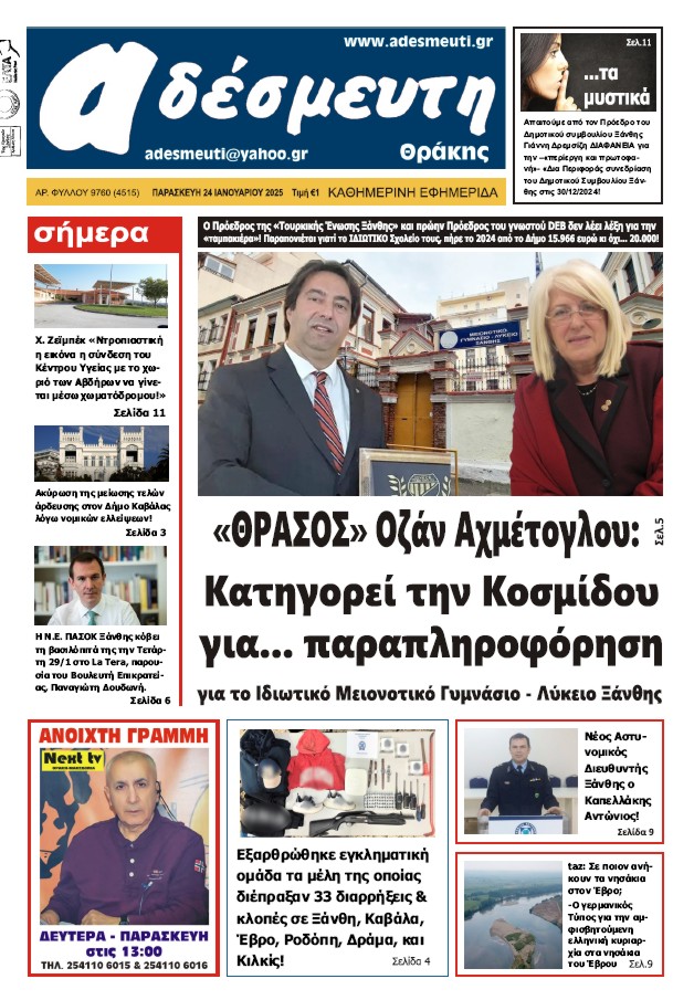 ΠΡΩΤΟΣΕΛΙΔΟ ΠΑΡΑΣΚΕΥΗ 24 ΙΑΝΟΥΑΡΙΟΥ 2025