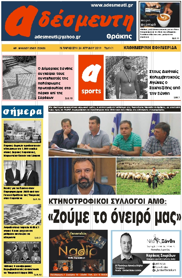 ΠΡΩΤΟΣΕΛΙΔΟ ΠΑΡΑΣΚΕΥΗ 26 ΑΠΡΙΛΙΟΥ 2019