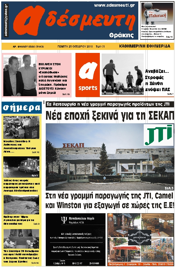 ΠΡΩΤΟΣΕΛΙΔΟ ΠΑΡΑΣΚΕΥΗ 26 ΟΚΤΩΒΡΙΟΥ 2018