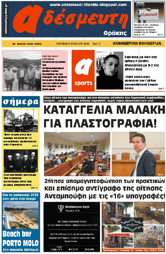 ΠΡΩΤΟΣΕΛΙΔΟ ΠΑΡΑΣΚΕΥΗ 27 ΙΟΥΛΙΟΥ 2018