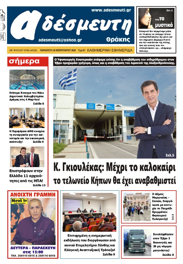 ΠΡΩΤΟΣΕΛΙΔΟ ΠΑΡΑΣΚΕΥΗ 28 ΦΕΒΡΟΥΑΡΙΟΥ 2025