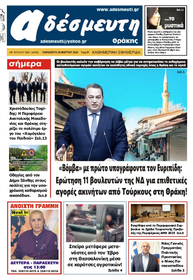 ΠΡΩΤΟΣΕΛΙΔΟ ΠΑΡΑΣΚΕΥΗ 28 ΜΑΡΤΙΟΥ 2025