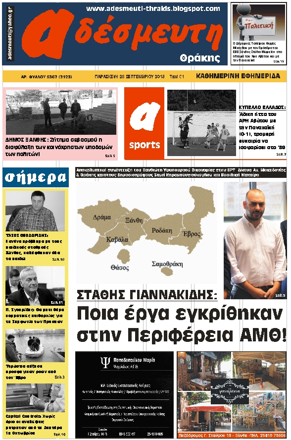 ΠΡΩΤΟΣΕΛΙΔΟ ΠΑΡΑΣΚΕΥΗ 28 ΣΕΠΤΕΜΒΡΙΟΥ 2018