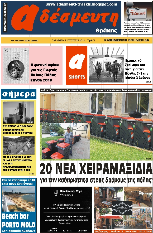 ΠΡΩΤΟΣΕΛΙΔΟ ΠΑΡΑΣΚΕΥΗ 3 ΑΥΓΟΥΣΤΟΥ 2018
