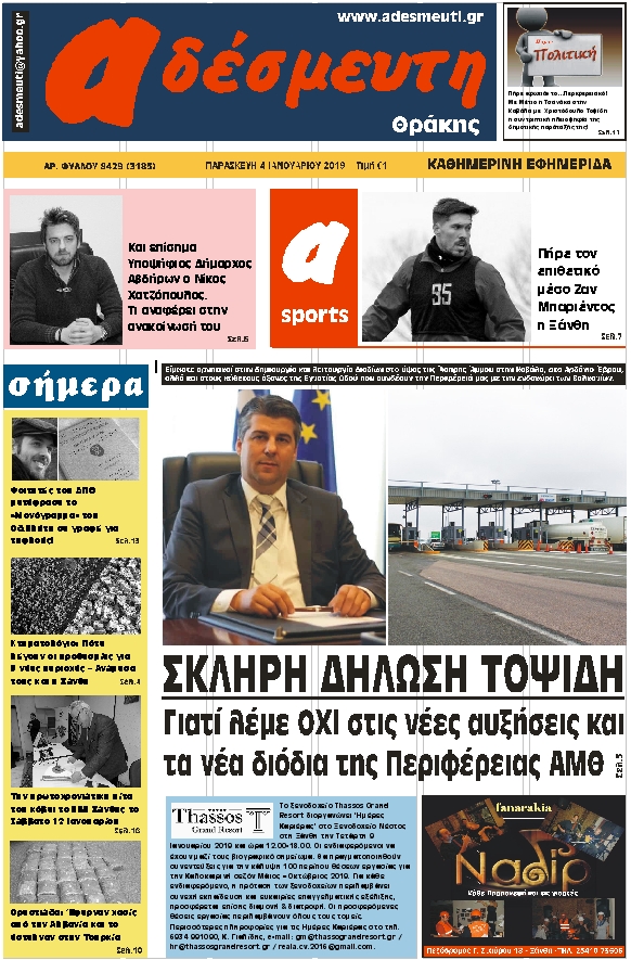 ΠΡΩΤΟΣΕΛΙΔΟ ΠΑΡΑΣΚΕΥΗ 4 ΙΑΝΟΥΑΡΙΟΥ 2019
