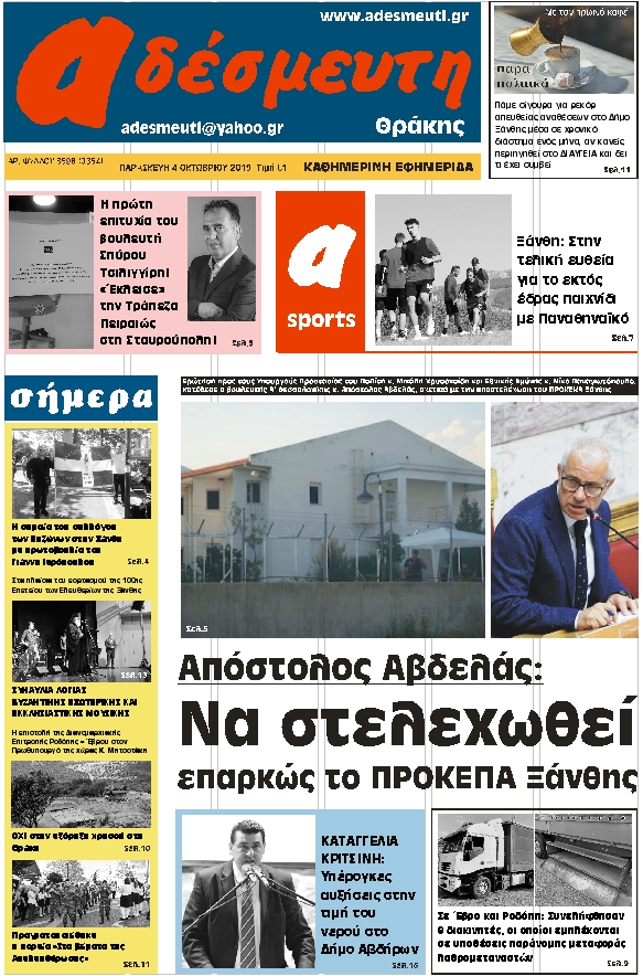 ΠΡΩΤΟΣΕΛΙΔΟ ΠΑΡΑΣΚΕΥΗ 4 ΟΚΤΩΒΡΙΟΥ 2019