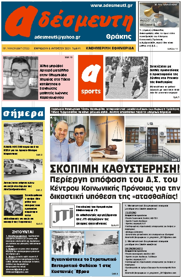 ΠΡΩΤΟΣΕΛΙΔΟ ΠΑΡΑΣΚΕΥΗ 6 ΑΥΓΟΥΣΤΟΥ 2021