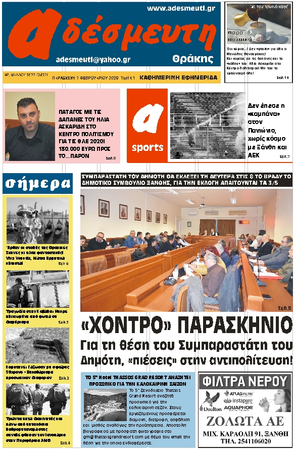ΠΡΩΤΟΣΕΛΙΔΟ ΠΑΡΑΣΚΕΥΗ 7 ΦΕΒΡΟΥΑΡΙΟΥ 2020