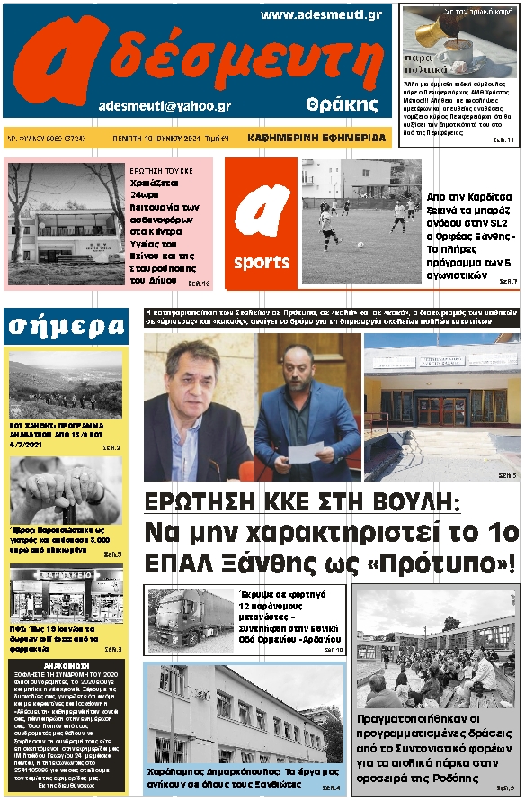 ΠΡΩΤΟΣΕΛΙΔΟ ΠΕΜΠΤΗ 10 ΙΟΥΝΙΟΥ 2021