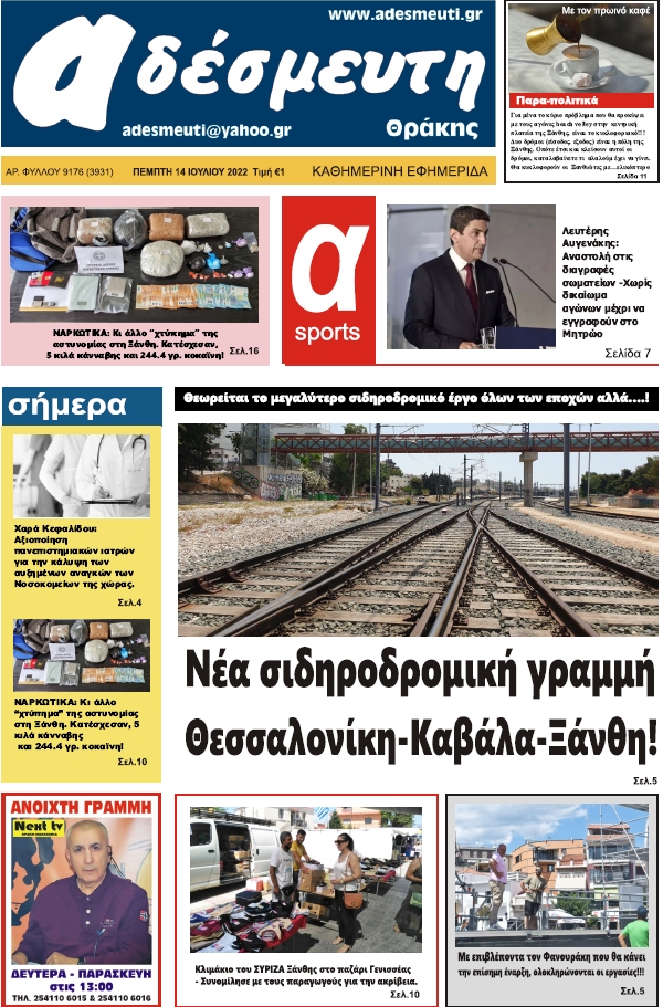 ΠΡΩΤΟΣΕΛΙΔΟ ΠΕΜΠΤΗ 14 ΙΟΥΛΙΟΥ 2022