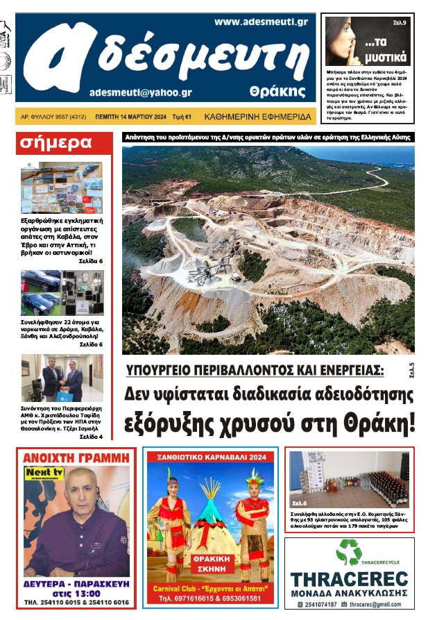 ΠΡΩΤΟΣΕΛΙΔΟ ΠΕΜΠΤΗ 14 ΜΑΡΤΙΟΥ 2024