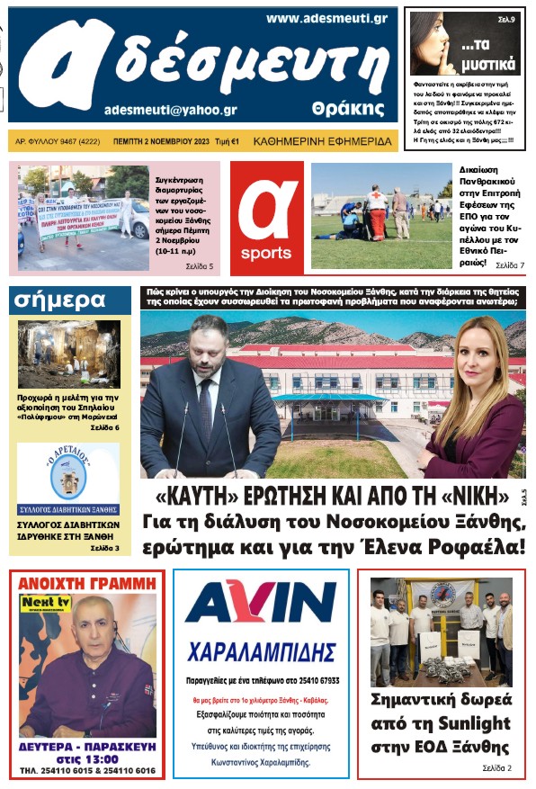 ΠΡΩΤΟΣΕΛΙΔΟ ΠΕΜΠΤΗ 2 ΝΟΕΜΒΡΙΟΥ 2023